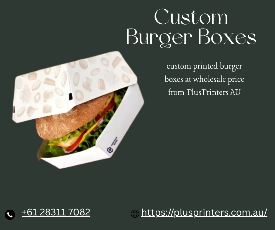 Buy durable and customizable burger boxes at Plus Printers Australia. They are eco-friendly and stylish, perfect for your brand. Order wholesale boxes now!